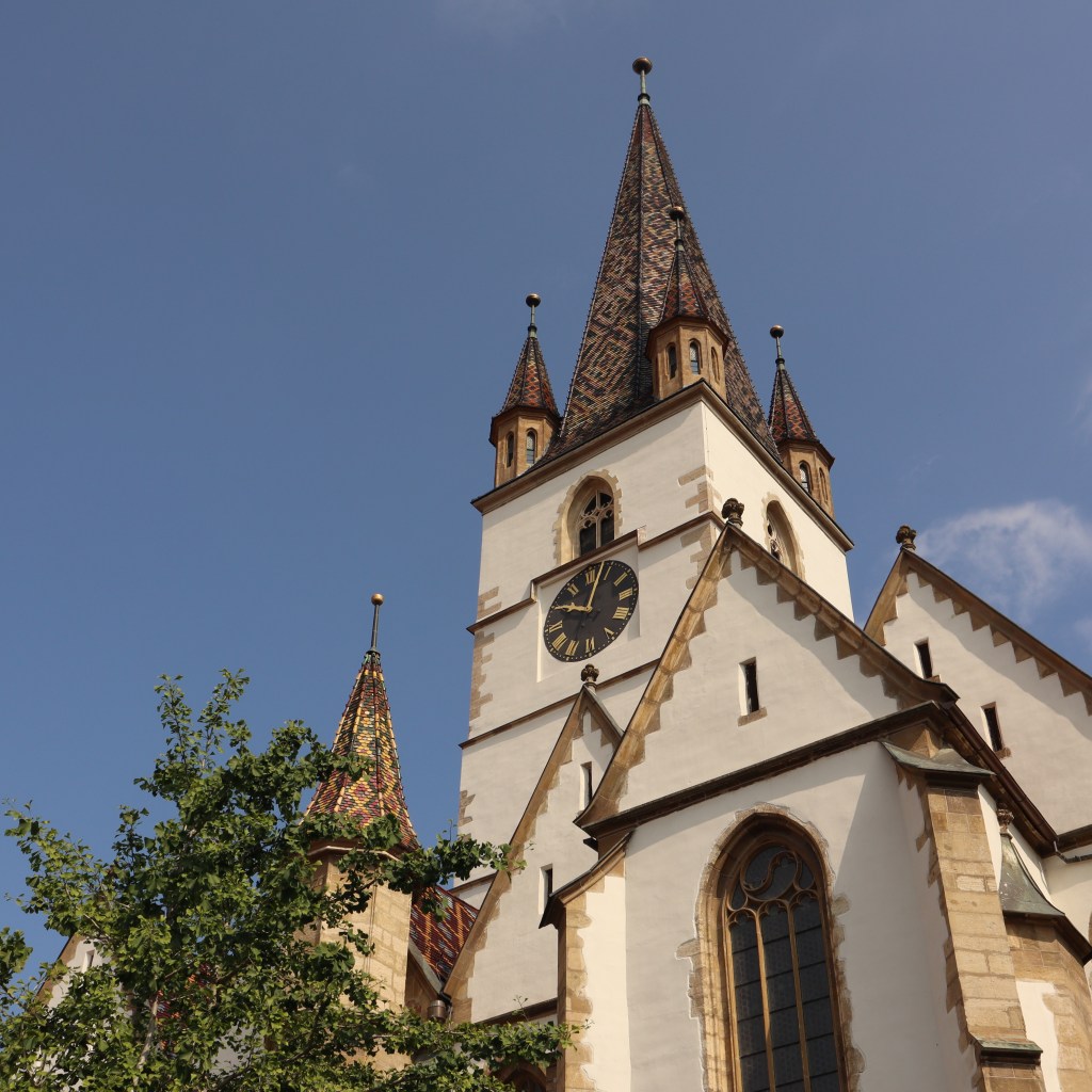 Duitse aanwezigheid sinds de dertiende eeuw (vakwerkhuisjes en ‘ogen’ in de daken). Zo hebben we hier ook de plaatselijke Lutherse kerk bezocht, gepaard met een praatje over de geschiedenis van de Lutherse gemeenschap in Sibiu.