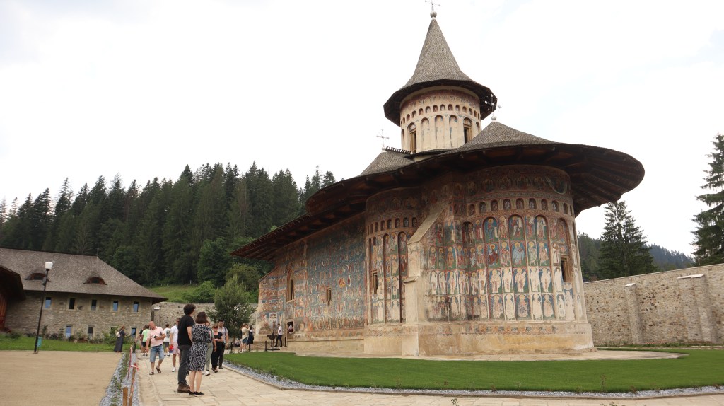 Op doortocht naar het oosten bezochten we twee van de beroemde Bukovina kloosters die op de Unesco Werelderfgoedlijst staan. Deze kloosters staan bekend om hun prachtige 15de-eeuwse fresco’s aan de buitenwanden, deze waren inderdaad indrukwekkend, al stond het Humor Klooster helaas in de steigers. Hier hadden we gelukkig wel een informatieve presentatie van twee van onze studenten over de rol van Maria in de kerk. Hierop volgde een zeer interessante discussie over de verschillende stromingen binnen het Christendom.