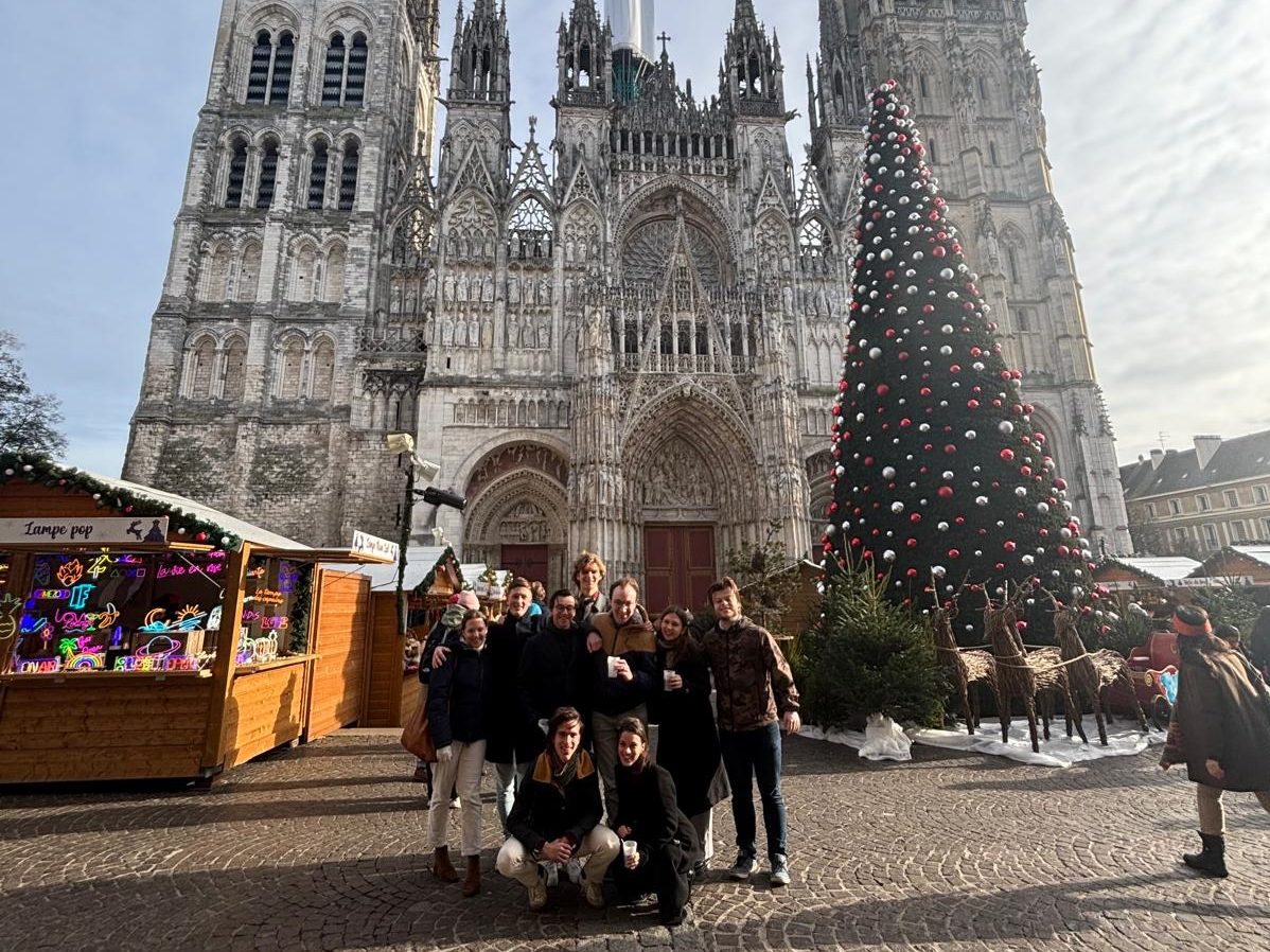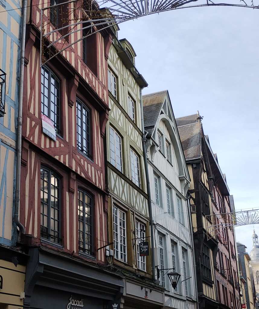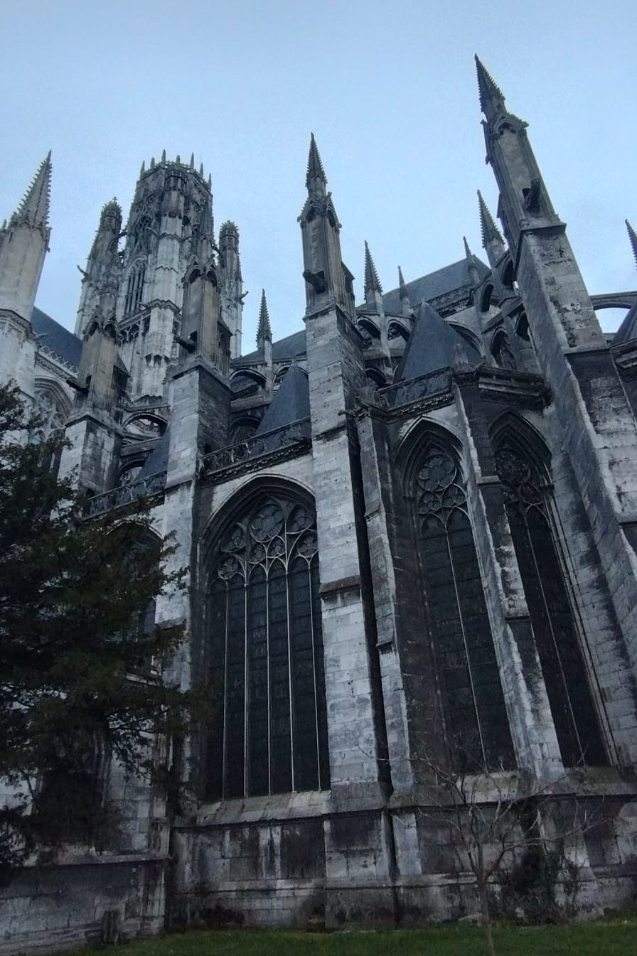 Een kleine delegatie pendelde de volgende ochtend heen en weer naar de lokale boulangerie, om alle respectievelijk meer of minder uitgeslapen gezichten van croissants en stokbrood te voorzien, gezien de zaterdag toch de dag was om het oord zo plat mogelijk te lopen. De oude stad bevond zich werkelijk dichtbij, al lopende was hij prima bereikbaar, daarbij onderwijl steeds meer van zijn grootsheid onthullend. Zo doken de curieuze torenspitsen die de skyline van Rouen rijk is nu en dan verrassend op, en trof de brigade zichzelf, afgeleid door de Kerstmarkt aan de voet van de kerk, opeens aan voor de poort van de Cathédrale Notre-Dame de Rouen.